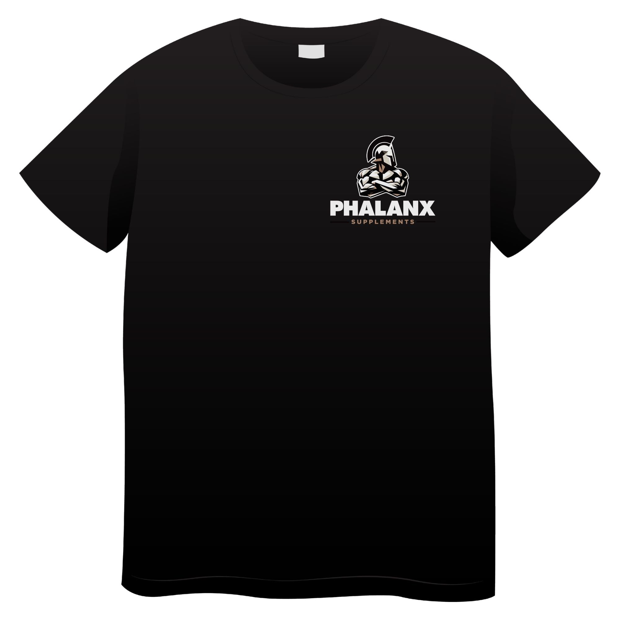 Mit großem Phalanx-Logo auf dem Rücken und kleinem Logo auf der linken Brust.