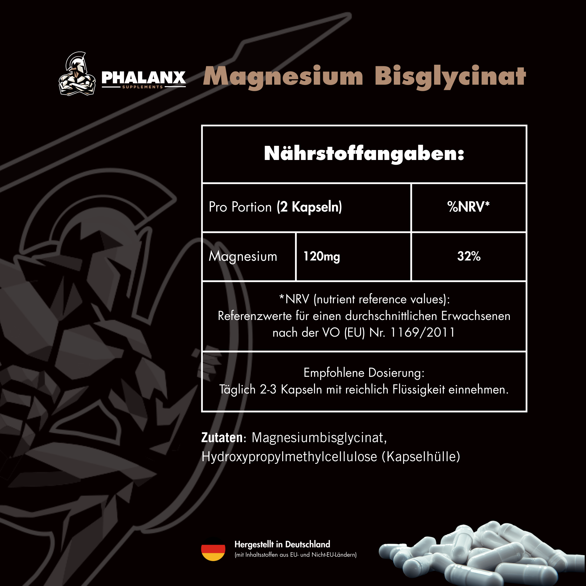 Magnesium Bisglycinat I 120 Kapseln I 500mg Magnesium Bisglycinat / 60mg Magnesium pro Kapsel